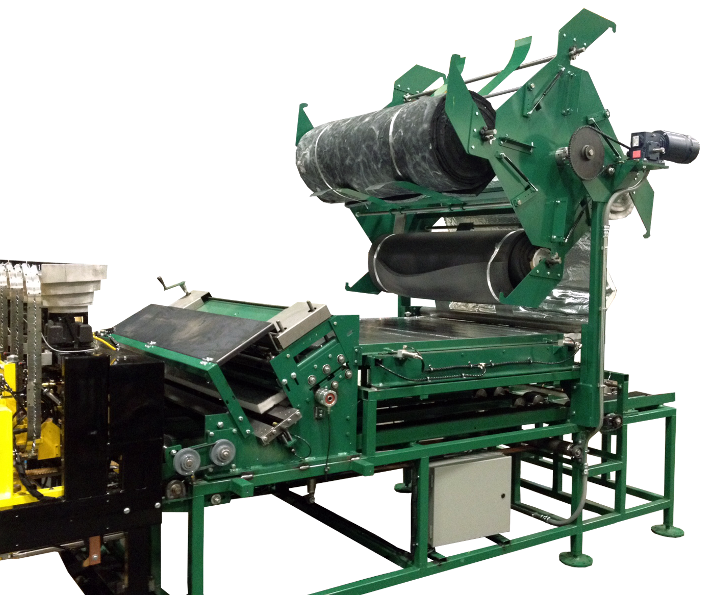 The Vicon Automatic Duct Liner Application System uncoils duct liner, applies liner adhesive to the sheet metal and automatically pins the liner to the sheet metal. This machine can work with various types of liner including but not limited to Armaflex® and K-Flex® insulation.