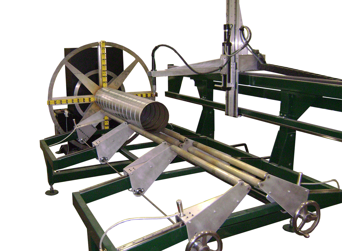The Vicon Spiral Pipe Cutting System is the ideal solution for plasma cutting round pipe and spiral duct up to 10’ long -- ranging in size from 6” to 60” diameter and in thickness from 26 to 16 gauge. Vicon’s patent pending technology has the ability to end trim, miter and cut various shaped holes for precise location of tap connections, branches, elbows and register grills.